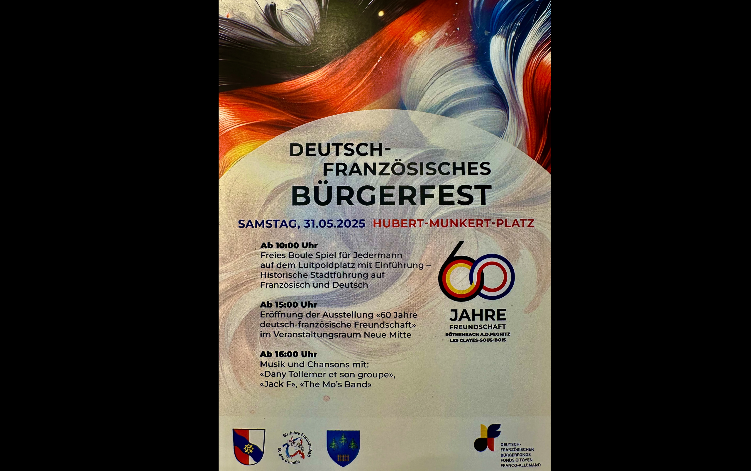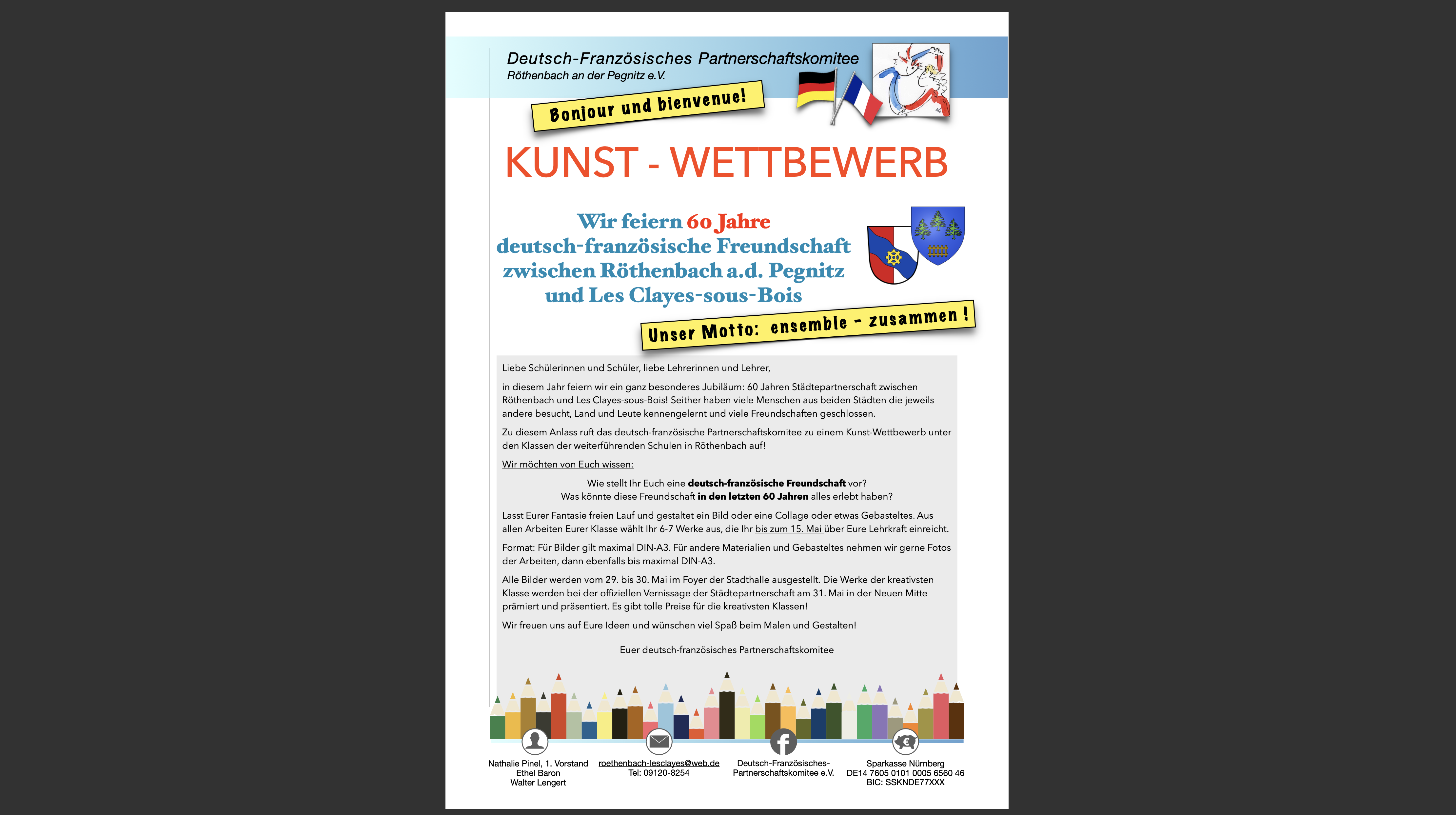 Anlässlich der 60-jährigen Freundschaft zwischen unserer Heimatstadt Röthenbach an der Pegnitz und unserer französischen Partnerstadt Les Clayes-sous-Bois veranstalten wir einen […]